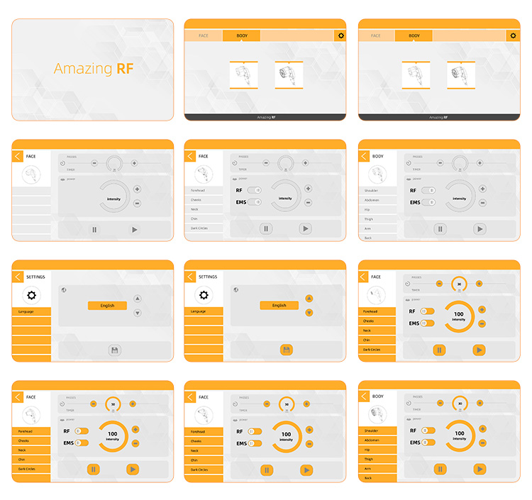 (2) EMS: Electrical Muscle Stimulation(EMS), also known as neuromuscular electricalstimulation(NMES) or electromyostimulation, is a protocal that elicits a muscle contrac-tion using electrical impulses that directly stimulate your motor neurons.According tohuman neurology, 600 times electronic pulse currents per minute directly act on musclenerve, can deeply reach the fat body, quickly eliminate body fat, and achieve weightloss effects more effectively than traditional methods, tightening the body's curves.